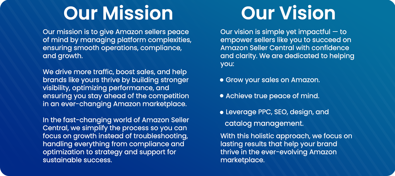 Guided by Johirul Alam Tuhin, our team of highly experienced Amazon experts works closely with brands to accelerate growth, optimize performance, and achieve sustainable success on the platform. With proven strategies and deep knowledge of Amazon Seller Central, we provide the guidance and support needed to stay ahead of the competition and build long-term results.